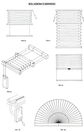 PX 10 Guide laterali antivento PX 11 Giorno - notte con doppio comando PX 12 Lucernari orizzontali con comando riportato al piano pavimento PX 13 Comando a maniglia con guide laterali PX 14 Comando riportato per doppi vetri o pareti mobili PX 15 Sopralluce circolari |