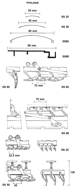 inox interconnessi al portapala (tipo SS 80) o con bloccaggio a vite (tipo SS 88).