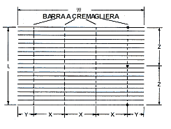 Movimentazione degli agganci lamelle con aste perforate singole per ogni supporto,